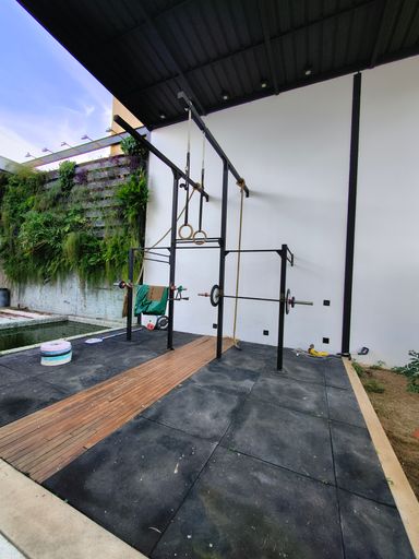 💪 espaço fitness com cobertura em estrutura metálica, criando um ambiente único de lazer e bem-estar.